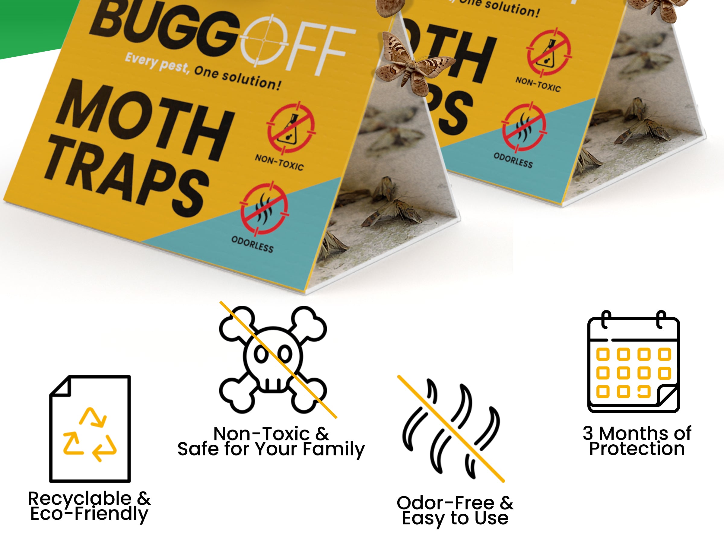 • Fácil de usar y de larga duración: solo tienes que abrir la caja, pelarla, doblarla y colocarla en el armario o en cualquier lugar donde haya polillas. Las trampas para polillas Buggoff se pueden usar para proporcionar tres meses de prevención contra polillas en la ropa y el armario por trampa. No se necesitan obleas, esta es una excelente solución preventiva para deshacerse de las polillas de la ropa y mantener el armario libre de polillas.